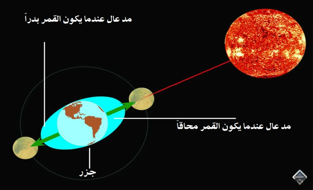 • قوة جذب القمر للمياه على سطح الأرض.